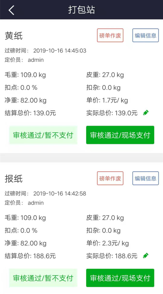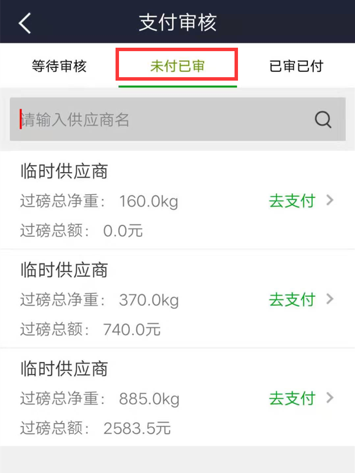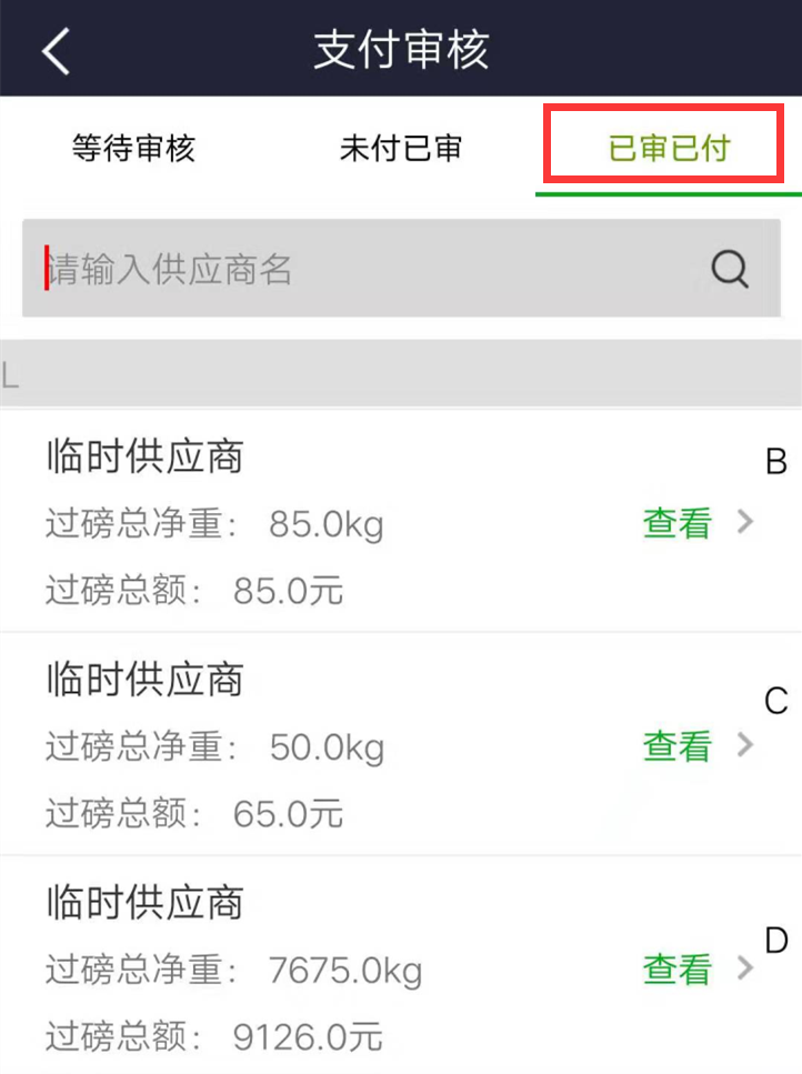審核已定價的磅單,信息核對無誤可進行結算單打印并支付