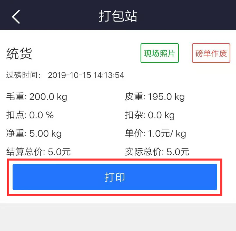 手動:手動點擊磅單上的”打印“按鈕打印結算單