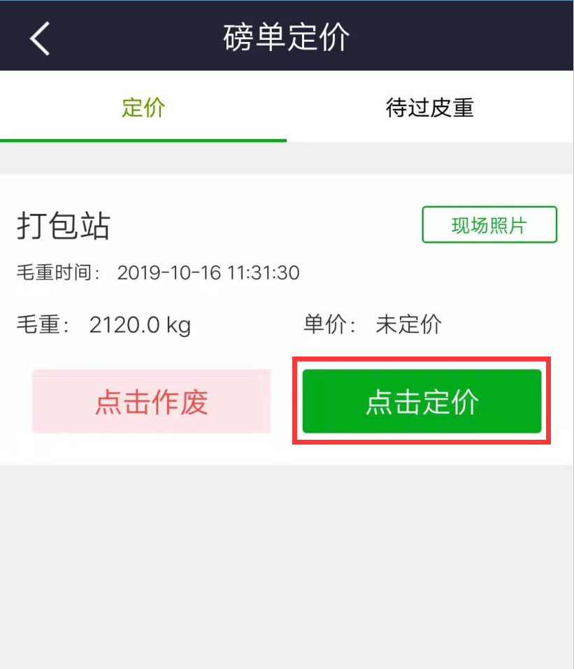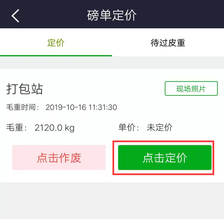 定價人在第一次刷卡后,通過 91 智能機 APP 進行定價(未完成定價的訂單將不能進行皮重刷卡)