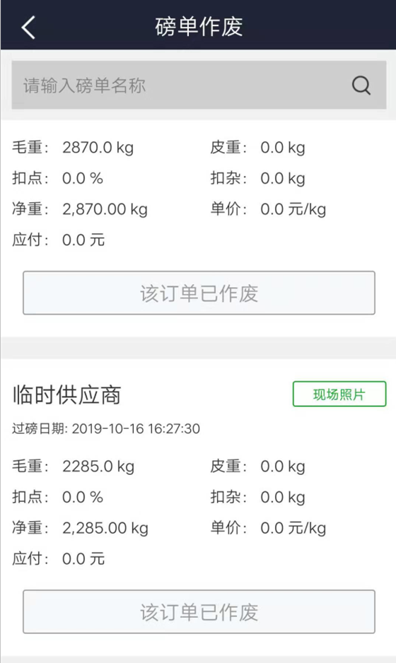 收錄作廢的磅單,可通過磅單名稱進行搜索