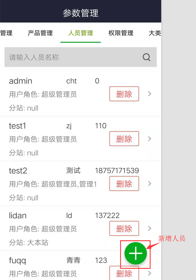 可新增編輯人員信息,修改名字,權限等(設定角色權限,不同人員不同權限的劃分)