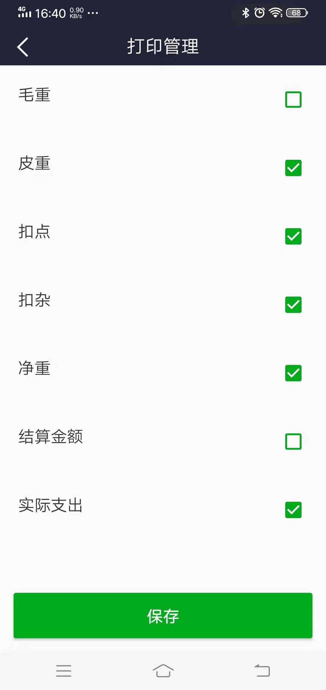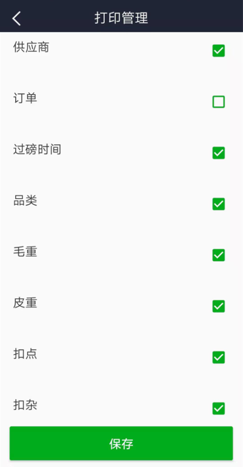 結算單打印項管理,不勾選代表不打印