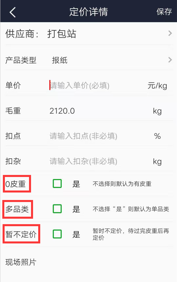 (多品類:一車貨含有多個品類的貨物,0 皮重:意思為沒有車 皮重量,暫不定價:暫時不定單價,在刷完皮重后進行定價)